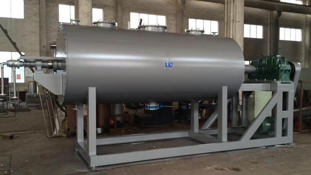 耙式真空干燥機采用大面積夾層加熱方式,傳熱面大,熱效率高。機器設(shè)置攪拌,從而可順利進行漿狀、膏狀、糊狀物料干燥,使物料在筒內(nèi)形成連續(xù)循環(huán)狀態(tài),進一步提高了物料受熱的均勻度。
