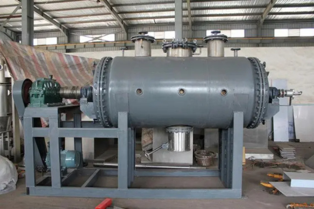 耙式真空干燥機采用大面積夾層加熱方式,傳熱面大,熱效率高。機器設(shè)置攪拌,從而可順利進行漿狀、膏狀、糊狀物料干燥,使物料在筒內(nèi)形成連續(xù)循環(huán)狀態(tài),進一步提高了物料受熱的均勻度。